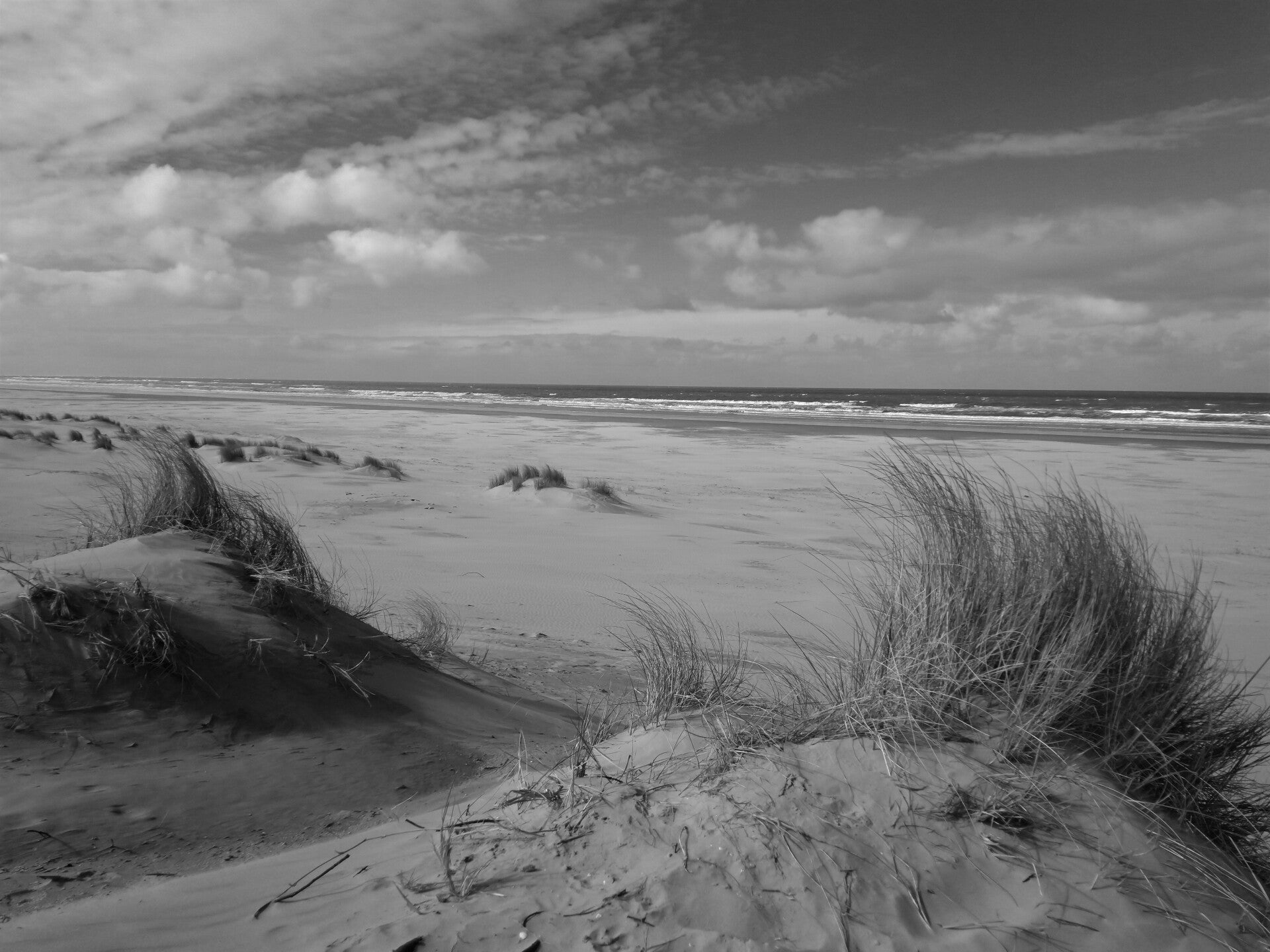 De natuur speelt met perspectief aan het strand op Ameland in zwart-wit